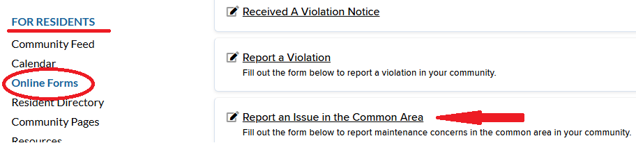 If you notice a common area maintenance issue within your community, you can report it via the Enumerate Engage community portal: